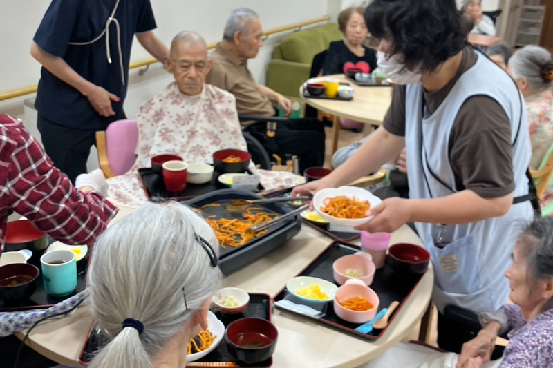 月に1~2回はお寿司やピザの出前など特別メニューの日があり、利用者様のリクエストが採用されることもあり、大変好評です。