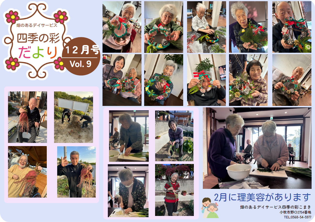 畑のあるデイサービス 四季の彩 こまき【住所】〒485-0806 愛知県小牧市野口 2754番地 【電話番号】TEL. 0568-54-5977【受付時間】 9:00-17:00 [ 月~日 / 365日 年中無休 ]